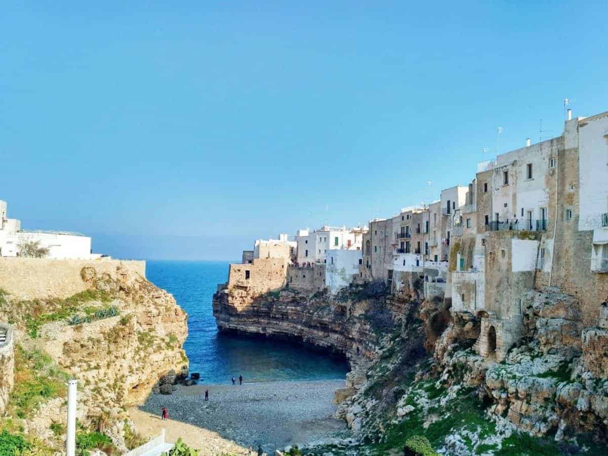 To get you into the rhythm of Apulia, let’s start with an easy day trip to the little coastal town of Polignano a Mare. Have you heard this famous Italian song called Volare, Cantare (also known as “Nel blu dipinto di blu”)? The author Domenico Modugno came from Polignano a Mare.